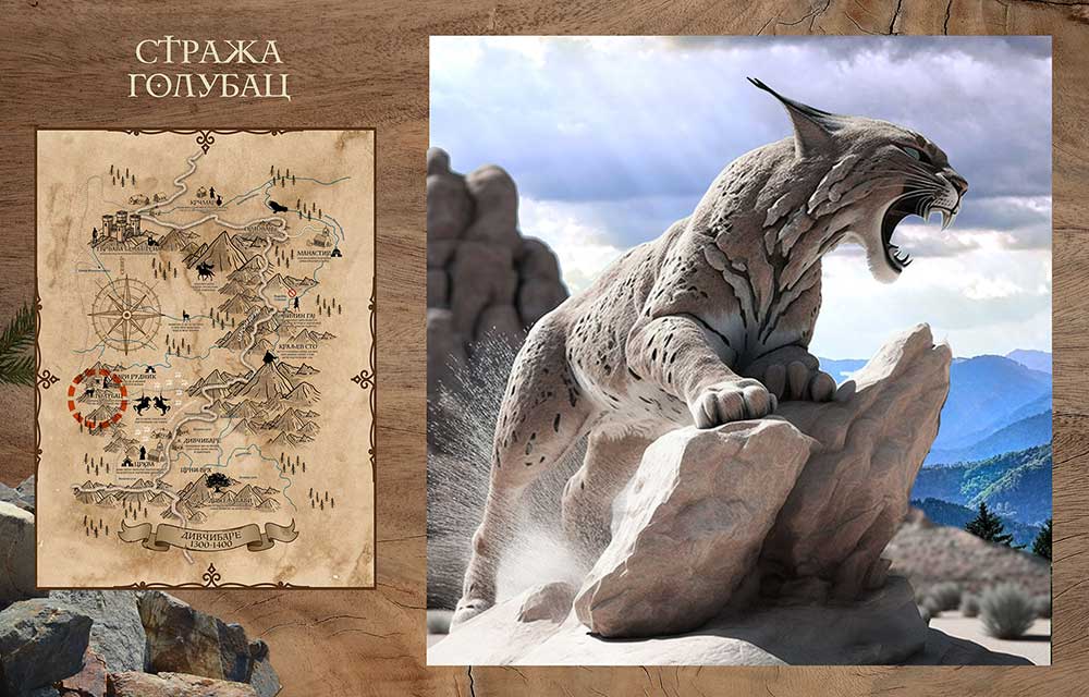 Nekadašnji neprikosnoveni gospodari divčibarskih šuma došli su i nestali zajedno sa beloglavim supovima. Dovedeni da spreče beg proklete Morane iz rudnika pod Golupcem, ove mistične zveri stalno obitavaju između našeg i podzemnog sveta. Skorim postavljanjem kamenog spomenika replike risa u prirodnoj veličini na mestu sa kojeg se može videti napušteni rudnik, dočaraćemo legendu i upoznati posetioce sa jednim zaboravljenim svetom.