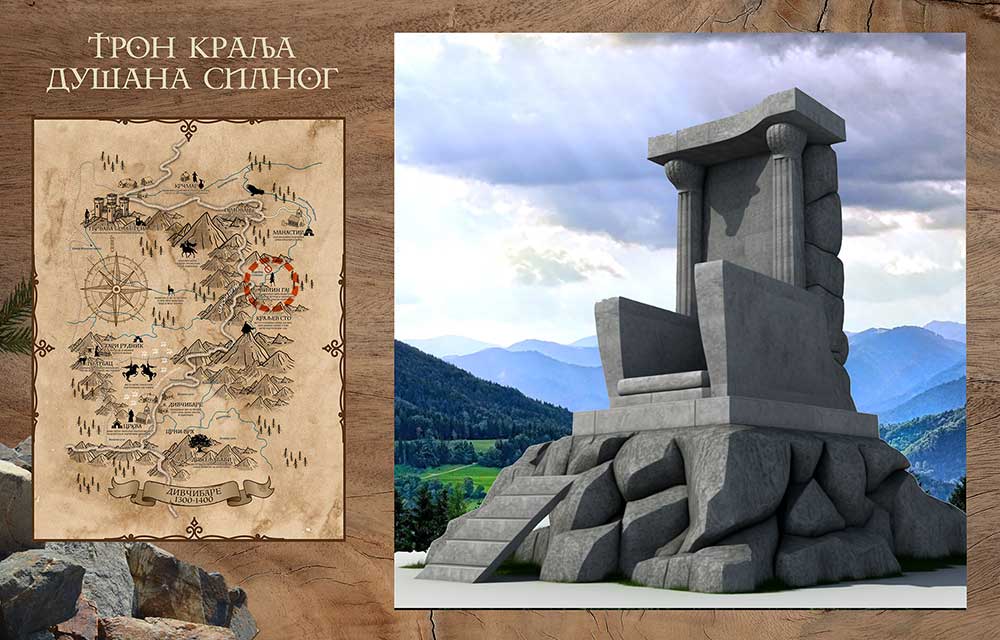 Na vrhu Kraljev sto biće postavđen kameni tron, veličine koja nadmašuje postojeće, da bi bio i spomenik – podsetnik na veličinu kasnijeg Dušanovog carstva. Biće to pogled koji može posetiocu dočarati poziciju komandanta bitke na Golubačkom polju, na kom je Dušan pobedio Ugare.