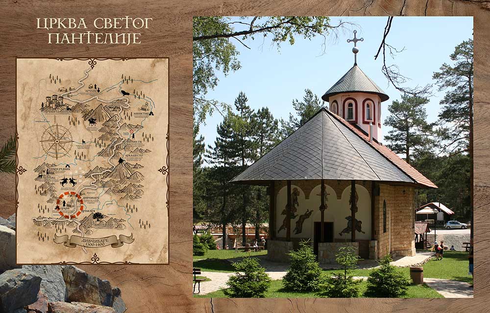Ovaj živi pdsetnik na Svetoga Savu koji se zamonašio u manastiru Sv Pantelejmona na Hilendaru, dominira centrom Divčibara. Svojom skromnom arhitekturom i neobičnom lepotom je ujedno i mesto na kojem se vernici zahvaljuju na isceliteljskoj pomoći Sv Pantelije (Pantelejmona), kao što se i vila zahvalila ispunivši obećanje da se više neće mešati u sudbinu ljudi.