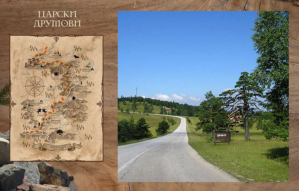 Na vrhu Orlovac koje je ime dobilo po nekadašnjem staništu beloglavih supova, a koje je po legendi doveo Car Dušan da mu budu ”oči” i čuvaju Divčibare i grad. Planira se postavljanje kamene replike beloglavog supa u poletu u prirodnoj veličini. Posebnu atrakciju predstavljaju povremena nadletanja supova sa kanjona Trešnjice što pothranjuje legendu o povratku supova na Divčibare a sa njima i kraljevića Andrijaša i Marka.